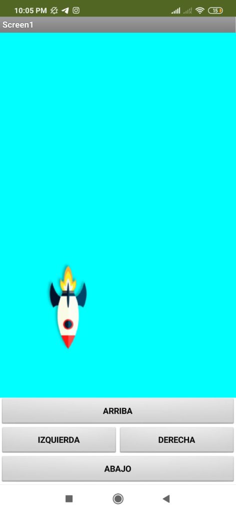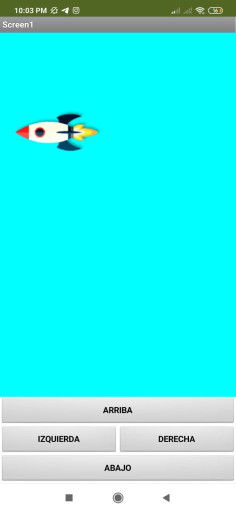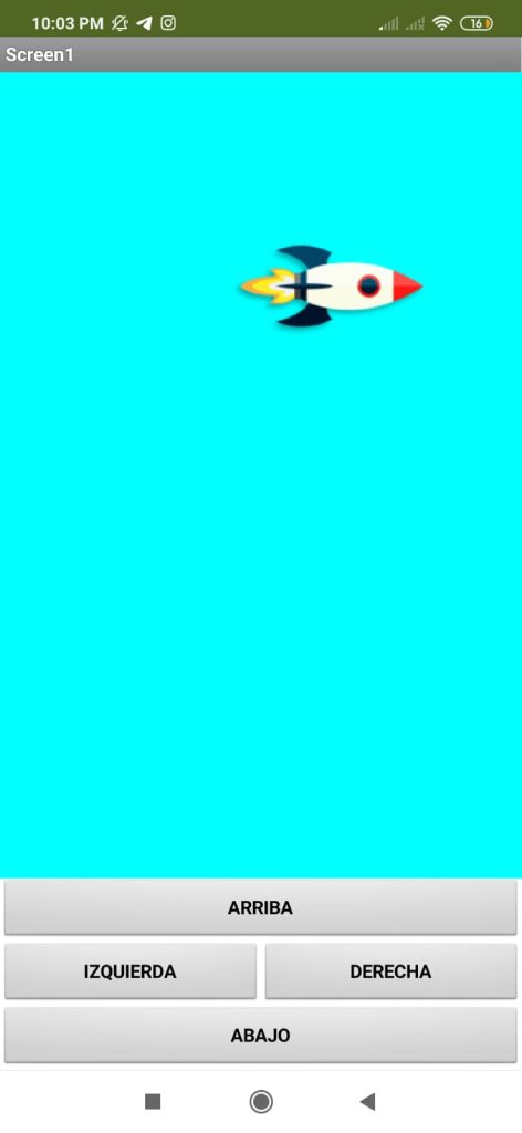 🆘 Pista: En el diseño en vez de la pelota debes añadir el componente spriteImagen y en la propiedad foto colocar la imagen del cohete que se encuentra más abajo. En la programación debes añadir el código para que el cohete gire a la dirección en la que se moverá, por ejemplo si quieres moverte a la derecha la propiedad dirección tendría que valer 0 y si quieres moverte a la izquierda la propiedad dirección tendría que valer 180 (estos valores representan el giro en grados cual si se tuviera un transportador).