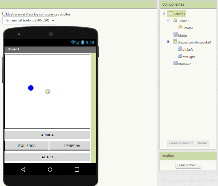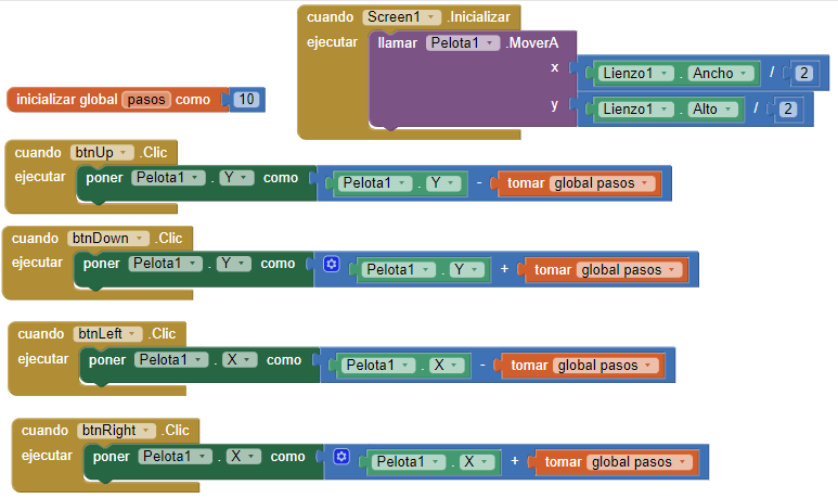 💡 Esta aplicación permite mover una bola sobre un lienzo usando 4 botones: arriba, abajo, derecha e izquierda.