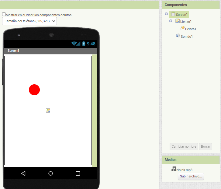 💡 Se trata de diseñar una pequeña animación donde con tu dedo deslizas una bola para que se mueve rebotando con los bordes de la pantalla. Cuando toques la bola la misma se detendrá.