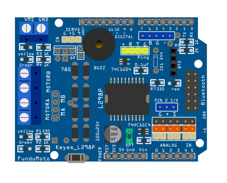 💡 El motor shield para Arduino, es un escudo basado en el chip L298P, este chip es un doble puente H. Es una muy buena opción para los que necesitan controlar dos motores de corriente continua, ya que, sin necesidad de cables, puede ser instalado en el Arduino UNO.
