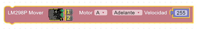 💡 Para que cualquiera de los motores funcionen debemos utilizar el bloque de programación que se ve en la parte inferior teniendo en cuenta lo siguiente: