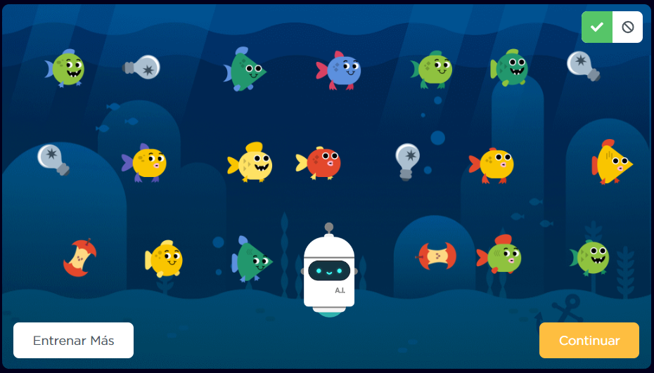 💡 Entrenar a la IA para que reconozca peces, desechos, animales marinos y características de los animales marinos según avancemos de nivel.