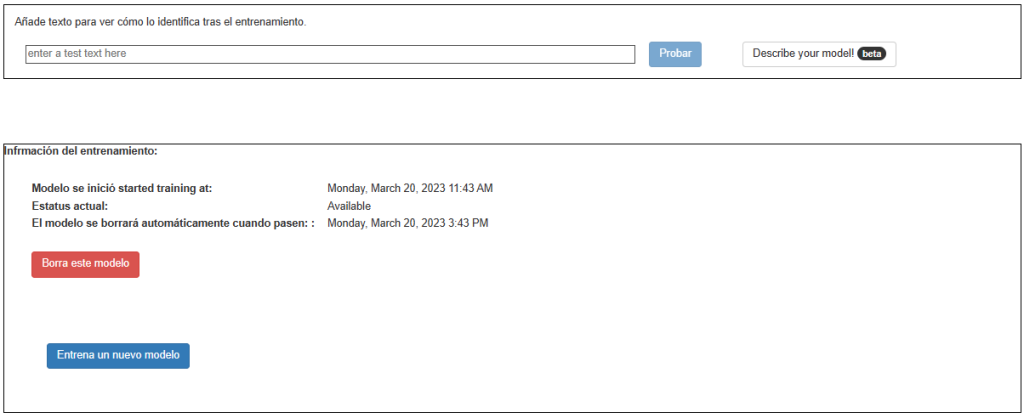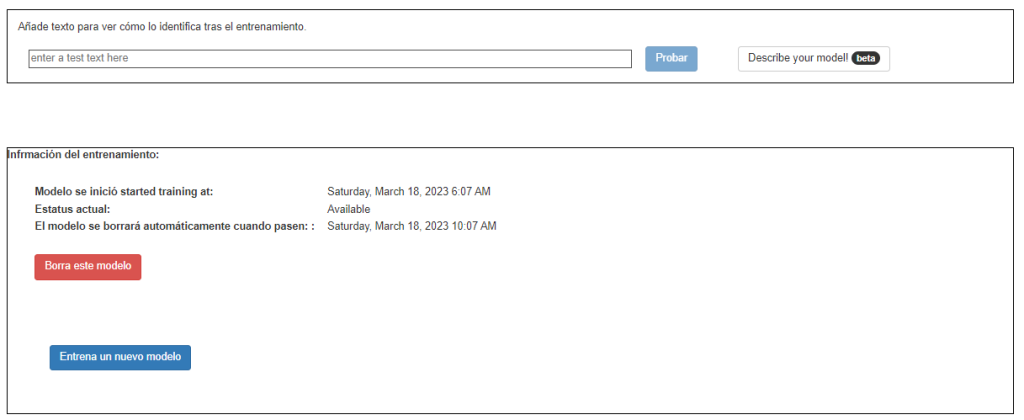 🆘 Clic en el botón Entrenar un nuevo modelo, si el botón no aparece es por falta de datos para el entrenamiento de la IA