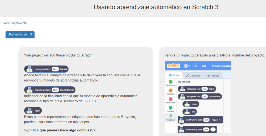 - Machine Learning o Aprendizaje Automático con Machine Learning for Kids