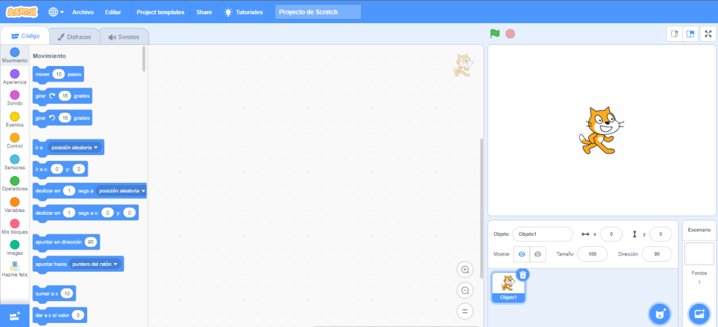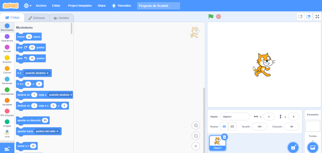 🆘 Esperamos a que se abra el entorno de programación Scratch 3 que es idéntico al entorno de programación PictoBlox