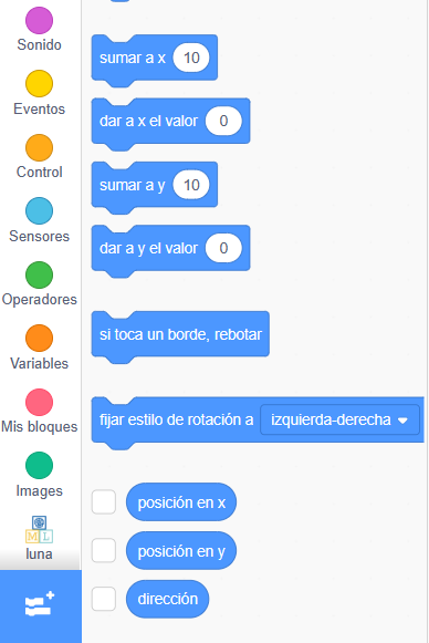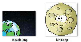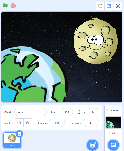 🆘 Recursos: Añadimos las imagen luna.png en un nuevo Sprite y la imagen de espacio.png como fondo del escenario.