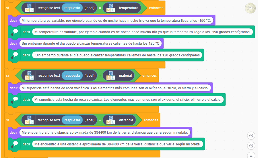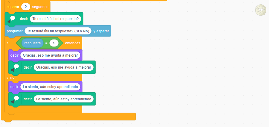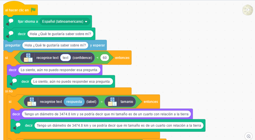 - Añadiremos una condición para que en caso de que la pregunta no esté relacionada con la luna la IA nos diga que no comprende la pregunta