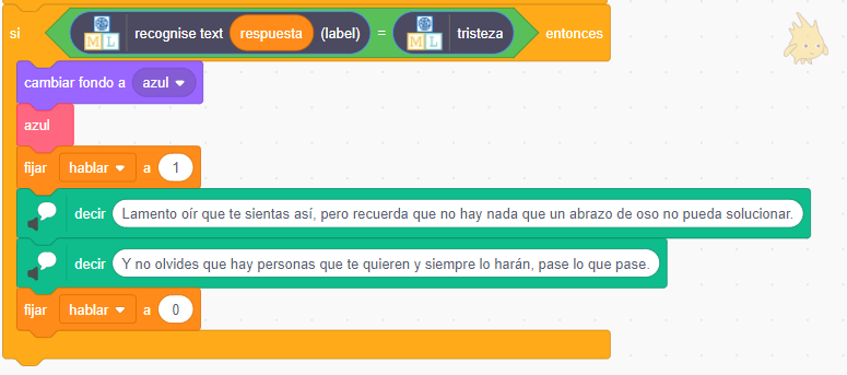 ➡️ Código que se ejecuta cuando la IA detecte que estamos tristes