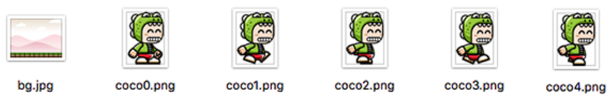💡 Añadimos las imagen coco0.png en un nuevo Sprite (las demás imágenes de coco deben importarse al disfraz del sprite coco0), después añadimos la imagen de buttonGo,png dos veces como dos Sprites diferentes (izquierda – derecha) y por último la imagen de bg.jpg en nuestro escenario
