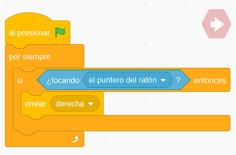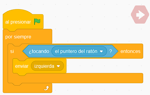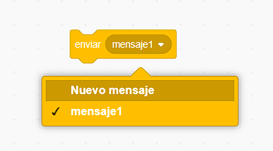 💡 Es decir: cuando en la secuencia de programación de un sprite situamos el envío de un mensaje con un identificador, entonces en otro personaje situado en el escenario podemos situar un bloque receptor que recoge ese mensaje y eso permite disparar una secuencia de acciones.