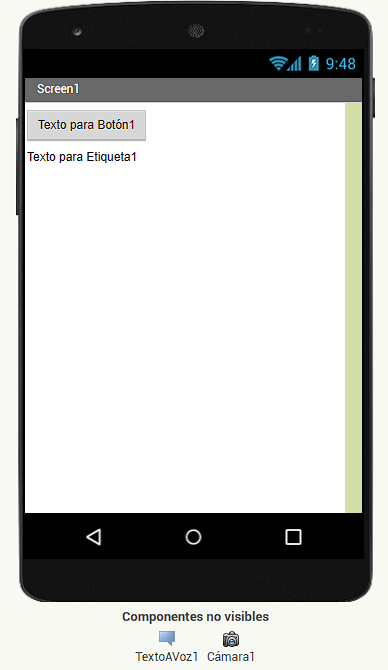 - No visibles: No se ven en el panel Visor de la página del Diseñador pero sí en la parte inferior en la sección: Componentes no visibles. Realizan tareas necesarias como guardar un archivo en el dispositivo, leer datos de un sensor, reproducir un audio, mostrar en pantalla un aviso, etc.