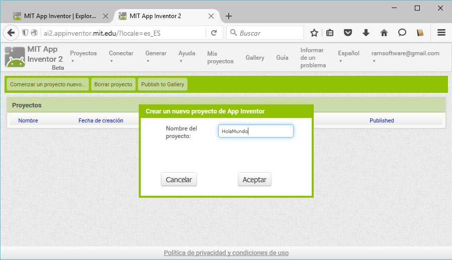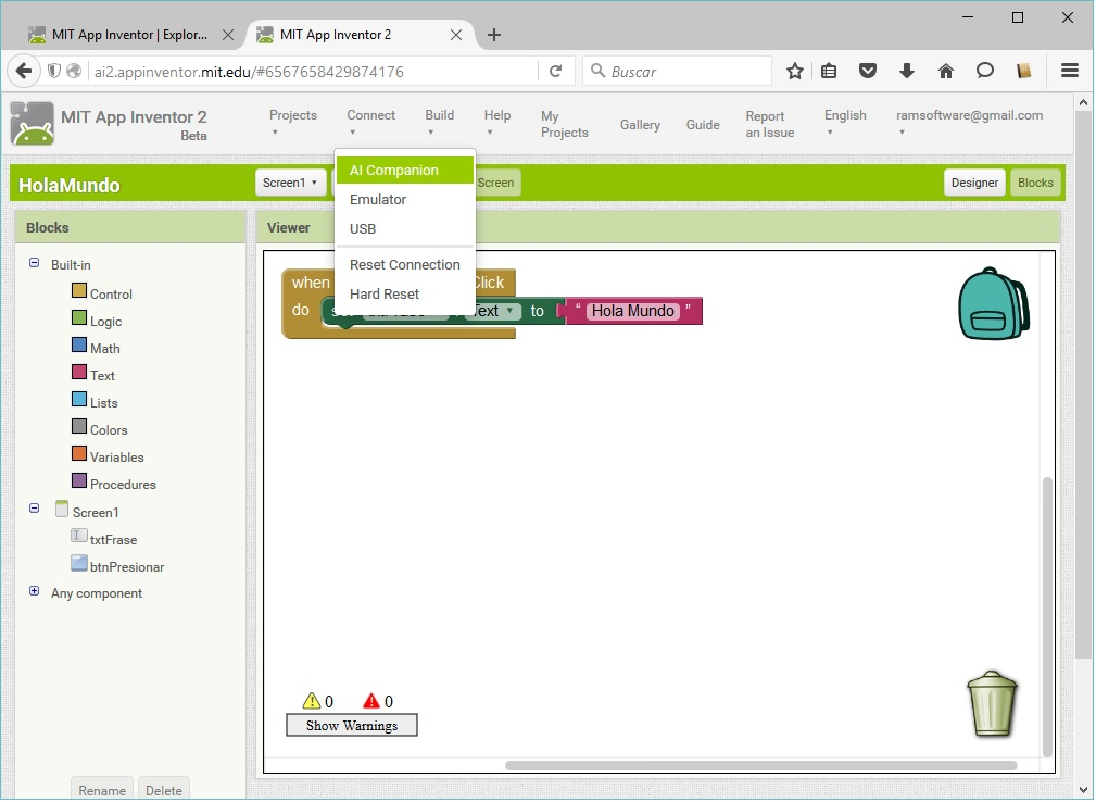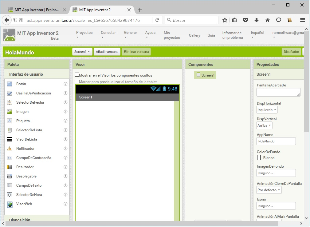💡 Acceso al editor de App Inventor 2