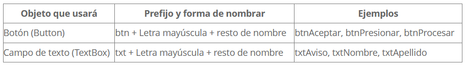 💡 Una muy buena recomendación o práctica de programación, es renombrar los objetos gráficos con un estándar. Se usará esta forma: