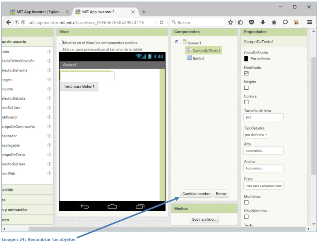 💡 Se presiona el botón “Cambiar nombre” para cambiar cada objeto gráfico