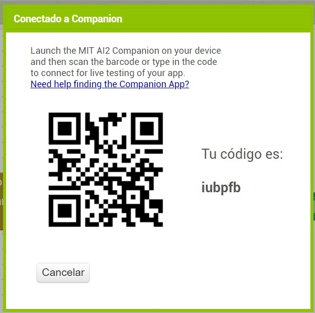 💡 Posteriormente escanear el código QR con nuestra aplicación AI2 Companion desde el celular