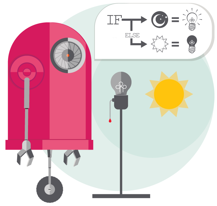 🧠 Una sentencia condicional es plantearse una pregunta para actuar de una forma u otra según la respuesta. Por ejemplo, si llueve, abriré el paraguas. Si por el contrario no llueve, lo cerraré. Si hace frío, me pondré el abrigo. Si hace calor, me lo quitaré. Si es de noche, encenderé una luz. Si por el contrario es de día, la apagaré.
