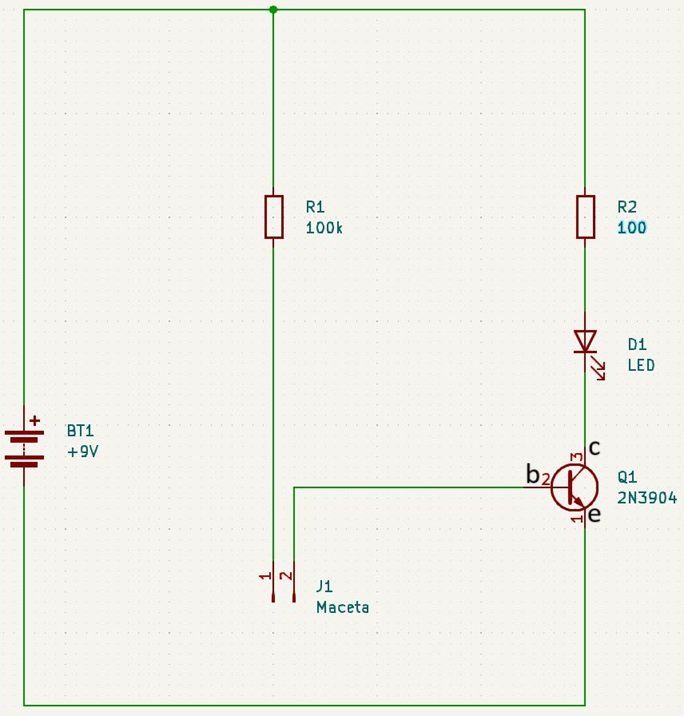 | Transistor NPN (2N3904) | Se activa con una señal positiva en la base. En este caso, la corriente transportada por la humedad. |