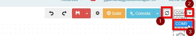 - Actualizar puertos de conexión, escoger el puerto correcto y por último Subir Código