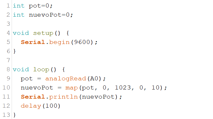 🧠 Imagina que recibimos mediante un Potenciómetro valores con un rango del 0 al 1023, pero nosotros queremos un nuevo rango de valores que vayan de 0 a 255 en función de la posición del Potenciómetro. Gracias a la función MAP podremos realizar esta tarea de una manera sencilla.