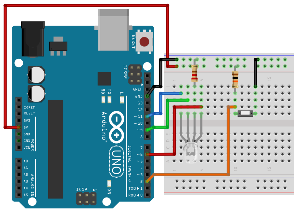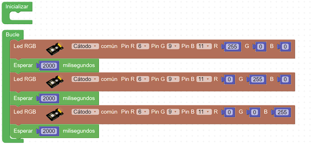 🧠 Lo que haremos en esta práctica es programar 3 colores diferentes en nuestro LED RGB que se muestren de manera consecutiva cada dos segundos. Los colores elegidos serán el rojo, verde y azul.