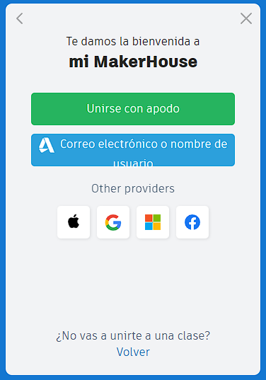 ➡️ Ingresamos a la Cuenta de Tinkercad de miMakerHouse y hacemos clic en «Unirse con apodo». Ahí colocamos nuestro nombre de usuario (primerNombre.primerApellido)